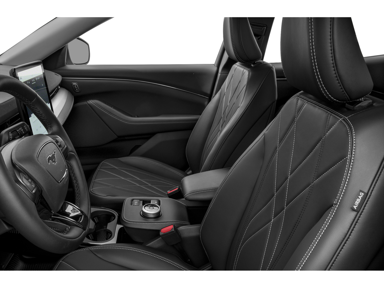 Step inside the Mach-E and you'll be greeted by a host of premium features, including a Hands-Free Foot-Activated Liftgate, Memory Driver's Seat and Side-View Mirrors, and a Black Painted Roof that adds a touch of sophistication. The Heated Steering Wheel and Heated Front Row Seats provide comfort on even the coldest days, while the 6-Way Manual Front Passenger Seat and Cargo Area Cover offer versatility and convenience.