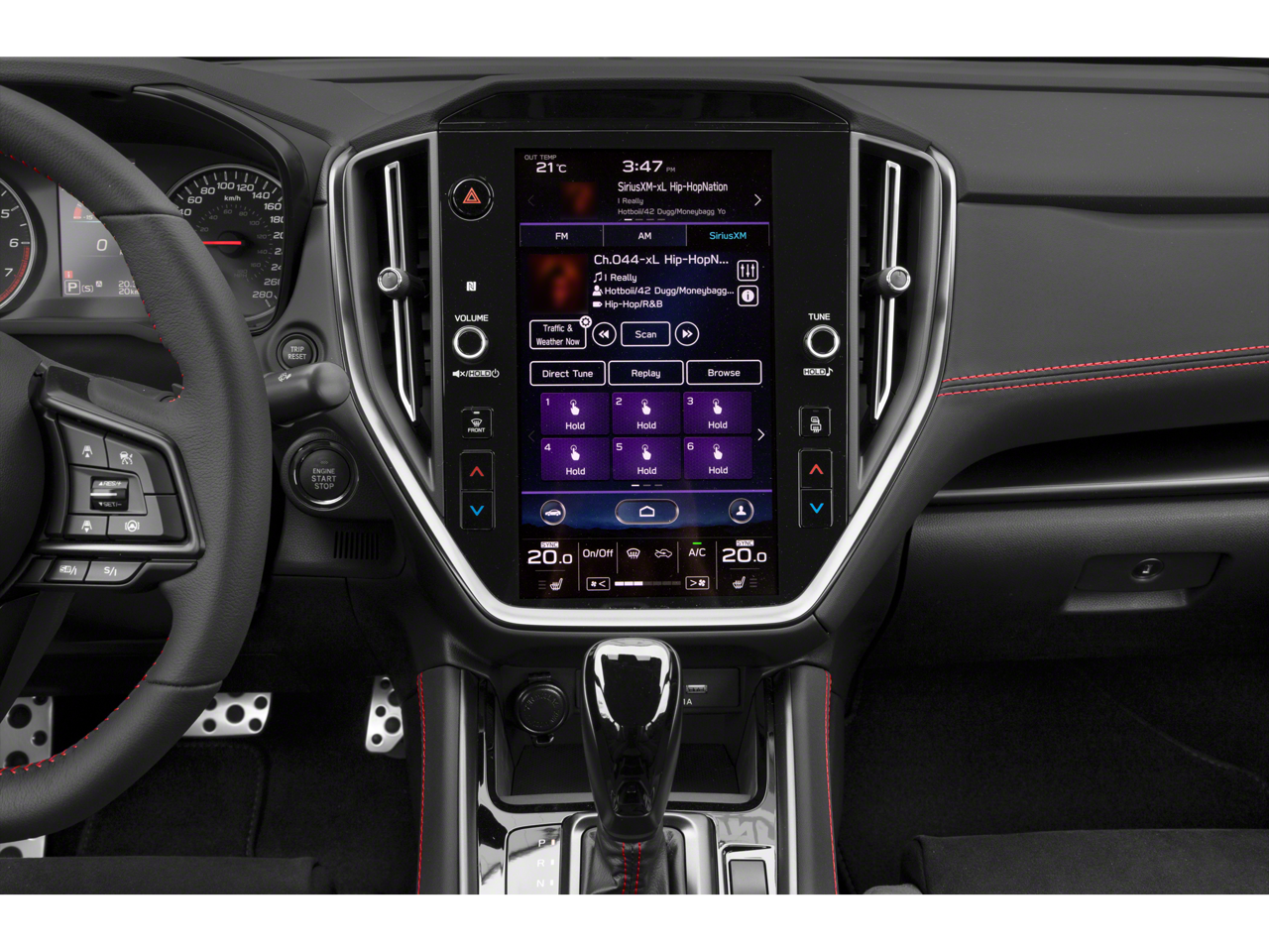- Radio: Subaru STARLINK 11.6" Multimedia Plus Sys -inc: AM/FM stereo HD Radio, multi-touch gesture high resolution display screen, voice activated controls, Bluetooth audio streaming connectivity, Bluetooth hands-free phone connectivity, Bluetooth hands-free SMS text messaging connectivity (applicable w/compatible cell phone), Near Field Communication (NFC), iPod control capability, rear-vision camera display, SiriusXM All Access radio (4 months free trial/subscription required after), SiriusXM Traffic (3 years free trial/subscription required after), SiriusXM Travel Link (3 years free trial/subscription required after), smartphone integration: Android Auto, CarPlay, STARLINK cloud applications, 504 watt harman/kardon speaker system w/11 speakers and roof mounted audio, satellite and connected services antenna