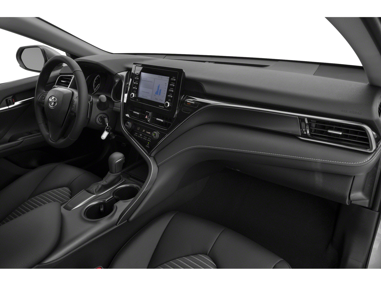 The interior of this Camry SE Nightshade is just as impressive, with premium features such as Fabric Seat Trim with Sport SofTex, a Front Center Armrest, and a Split folding rear seat. Stay connected with Apple CarPlay and Android Auto, while enjoying the convenience of Automatic temperature control and a Rear window defroster.