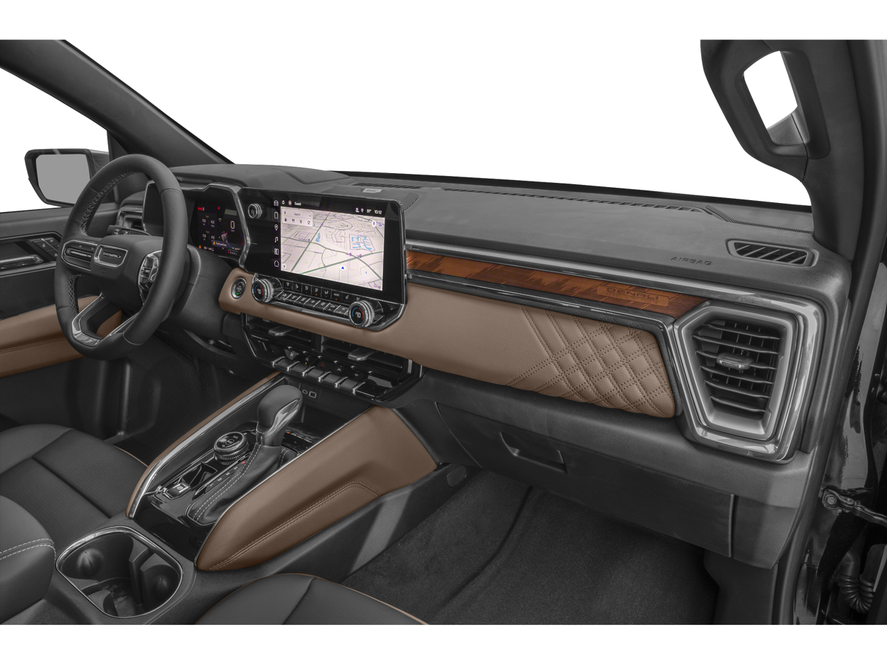 Elevate your driving experience with a host of premium features, including a sunroof, ProGrade Trailering System, and a Heads-Up Display that keeps crucial information within your line of sight. The Denali's spacious cabin is adorned with genuine wood accents and perforated leather-appointed seating, creating a truly luxurious atmosphere.
