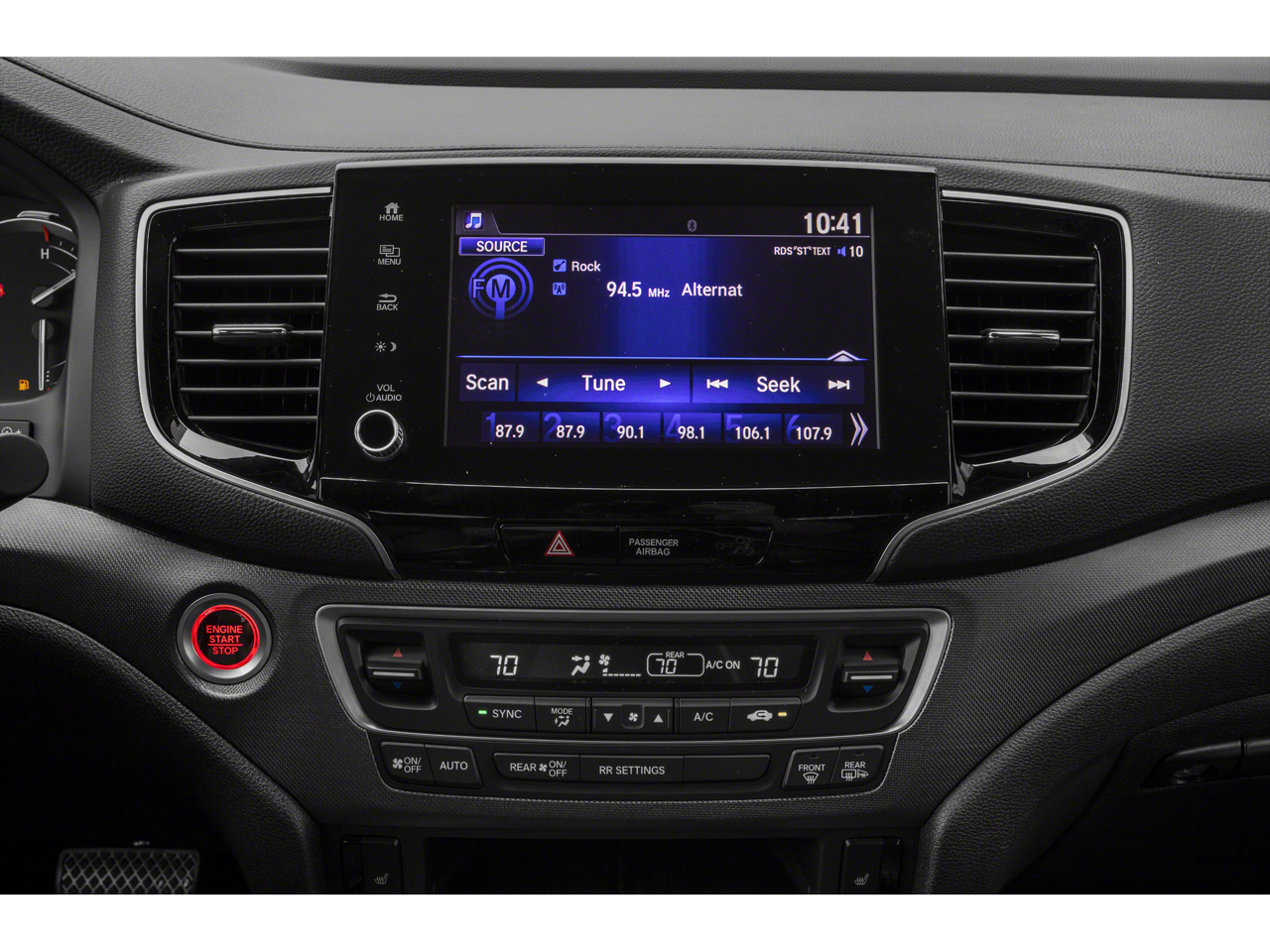 Comfort and convenience are paramount in the Ridgeline RTL. Indulge in the luxurious Leather Seat Trim, Heated Front Bucket Seats, and Power Driver Seat, ensuring a truly tailored driving experience. The Dual-Zone Automatic Climate Control and Rear Air Conditioning keep you and your passengers in complete comfort, no matter the weather.
