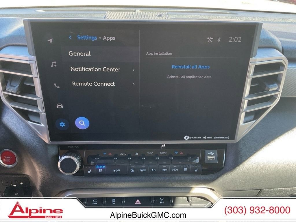 Discover the ultimate blend of power, capability, and comfort in the 2023 Toyota Tundra Limited. This exceptional full-size truck is the perfect companion for your adventures, whether you're conquering the off-road or navigating the city streets.- 172 Point Safety Inspection- TRD Off-Road Package: 20 Black Alloy Wheels, Black Grille with Chrome Surround, Multi-Terrain Back Monitor, TRD Off-Road Suspension with Bilstein Shocks, Front & Rear Mud Guards, Bedside TRD Off Road Decal- Predator Drop Step (TMS)- Bed Mat (TMS)- All Weather Floor Liners (TMS)- Stainless Steel Door Edge Guard (TMS)- Exhaust Tip - Black Chrome (TMS)- Black Tailgate Insert (TMS)- USB Phone Charging Cable Kit (TMS)Powered by a robust 3.4L V6 engine and a smooth 10-speed automatic transmission, this Tundra Limited delivers exceptional performance and efficiency, with an EPA-estimated 17 city/22 highway MPG. The advanced 4WD system ensures you can conquer any terrain, while the TRD Off-Road Package enhances your off-road capabilities.Inside, the Tundra Limited pampers you with premium features, including a state-of-the-art infotainment system with Apple CarPlay and Android Auto, dual-zone automatic climate control, and heated and ventilated front seats. The spacious cabin and versatile cargo bed make this truck a true workhorse, ready to handle all your hauling and towing needs.Safety is a top priority, and the Tundra Limited is equipped with a comprehensive suite of advanced safety technologies, including a Rear Camera, Blind Spot Monitoring, and Toyota Safety Sense 2.5+. You can drive with confidence, knowing you and your loved ones are well-protected.Experience the unparalleled capability, comfort, and style of the 2023 Toyota Tundra Limited. Visit our showroom today and let us demonstrate why this truck is the perfect fit for your lifestyle.All prices include Alpine Down Payment Assistance of $1,000 financing credit and $689.50 dealer and handling.-Not all buyers will qualify.** CALL FOR DETAILS (303) 932-8000 or visit us at 3106 W. County Line Rd. Highlands Ranch, CO 80129 **